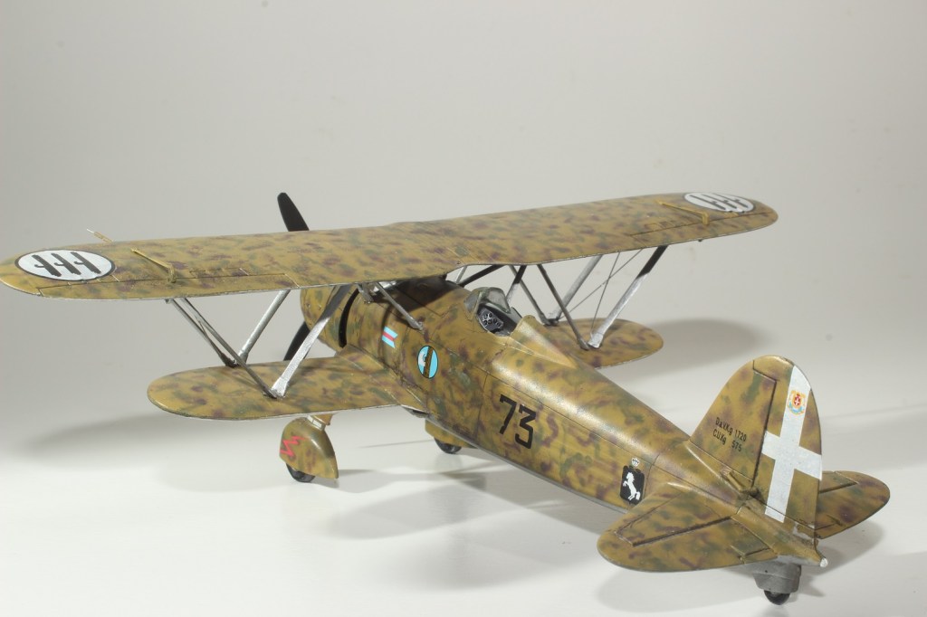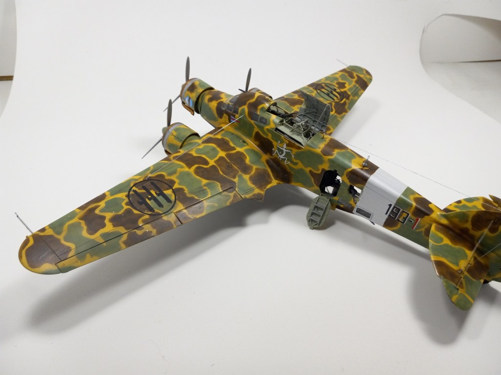 My Trumpeter 1/48th SM.79 Sparviero represents 193-1 flown by the squadron commander of 193° Squadriglia 87° Gruppo, 30° Stormo, Regia Aeronautica, at Sciacca, Sicily, early 1941. Fiat CR.42 Falco is 1/48th by Italeri represents the aircraft of Maggiore Ernesto Botto, commander of the 9° Grouppo, 4° Stormo while stationed in Sicily and flying missions over Malta. While flying missions during the Spanish Civil War, then-Capitano Botto’s right leg was smashed by a bullet. During his hospitalization, part of that leg was amputated and replaced with an artificial limb. On 3 July 1940, Botto shot down the Hurricane (P2614) piloted by Officer John Waters of Hal Far (Malta) Fighter Flight.