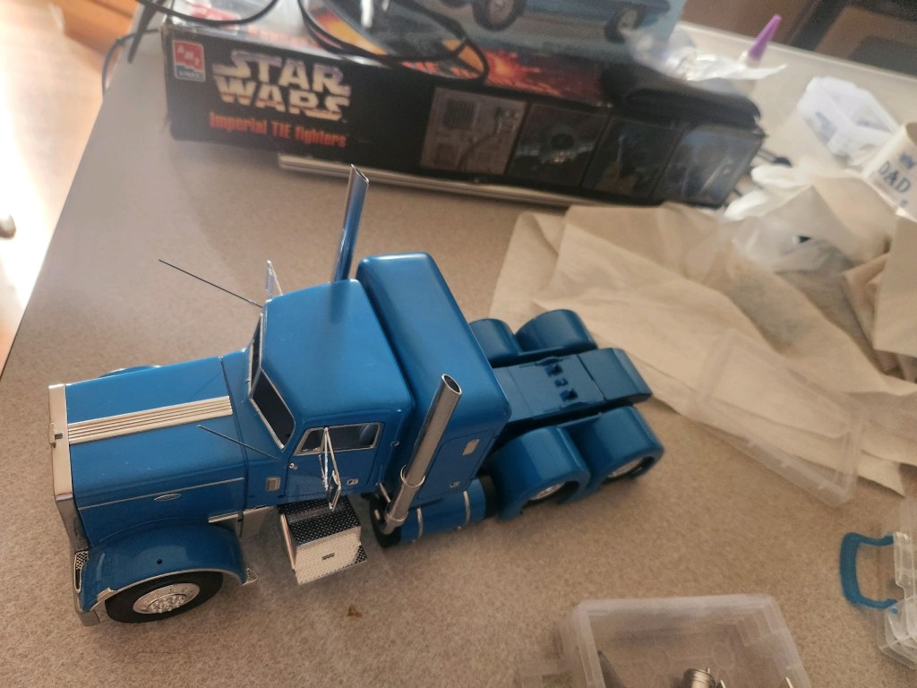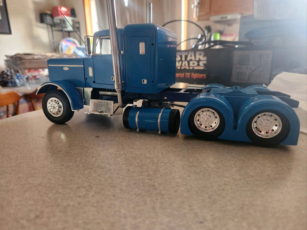 On the bench at the “Glue Bomb Express”, hosted by The Fishstick (Chris Long), is the Revell Peterbilt 359 Conventional tractor. This is a fairly easy kit to build as a box stock. However, that’s not going to happen to this one. Fishstick is adding 3D printed rear fenders, fuel tanks, and several other custom accessories.