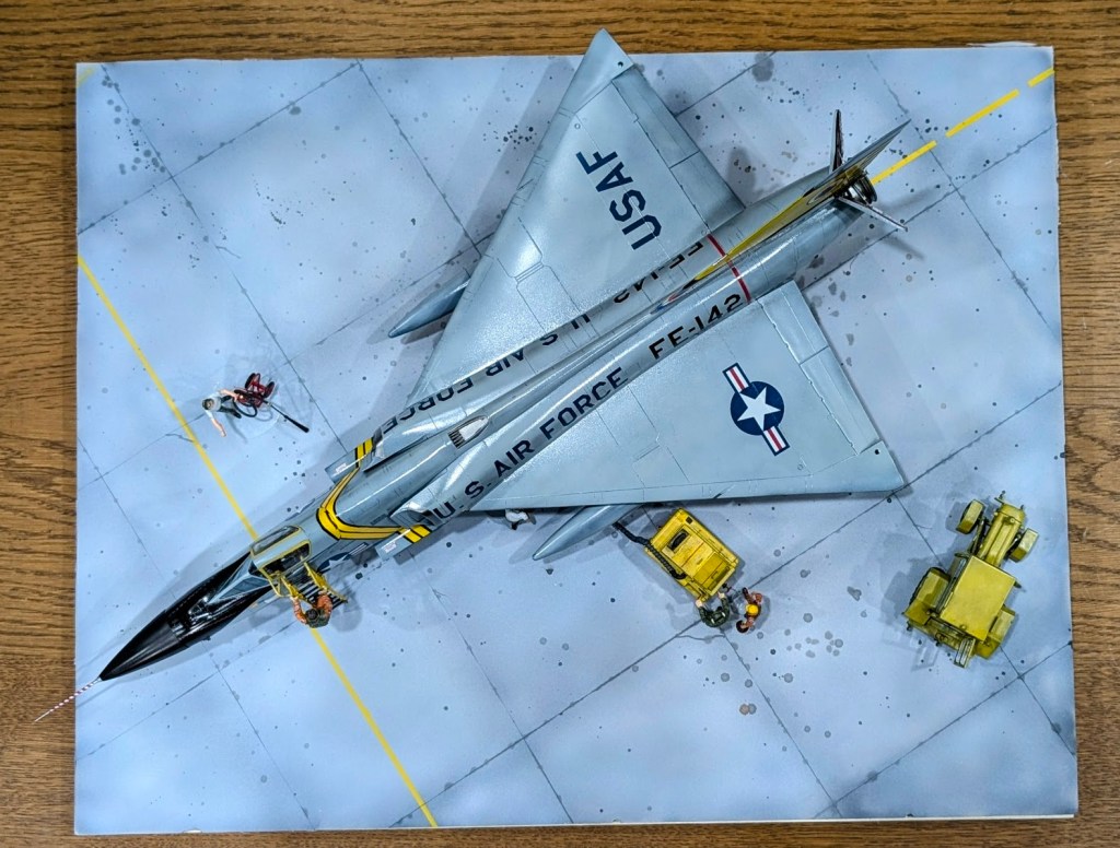 The late 1940s and early 1950s saw a frenetic burst in the U.S. to develop ever better jet powered fighters. The result was the post-Korean Century Series fighters, so called because of their designations in the F-1XX range:. the F-100 Super Sabre, the F-101 Voodoo, the F-102 Delta Dagger, the F-104 Starfighter, the F-105 Thunderchief, and the F-106 Delta Dart. I’ve set the ambitious goal of building all six of these planes in 1/48 scale, working backward from the F-106, which I’ve recently completed.