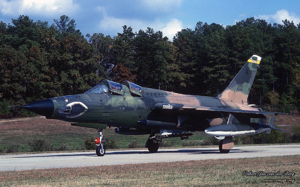 The F-105F 62-4425 was built by Republic Aircraft in Farmingdale, New York, and added to the United States Air Force inventory on January 16, 1964. Around February 9, 1970, it was converted to the F-105G Wild Weasel (SAM suppression) configuration and was eventually assigned to the 17th Wild Weasel Squadron, 388th Tactical Fighter Wing, operating from the Korat Royal Thai Air Base in Thailand, from where it flew missions into Vietnam. This aircraft is sometimes called NAADA, a reference to the name marking on the intakes. The actual lettering is in some language I cannot identify.