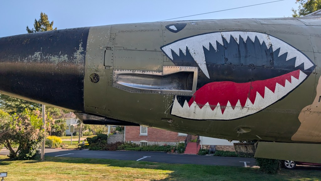 It is always good to have reference photos of a real example of your subject so that you can see just how wildly inaccurate the model you are building is. It just so happens that there is one F-105 in Michigan, and it is sitting outside Sons of the American Legion Post 325 in Blissfield. It also just so happens that it’s an F-105G, which is the version I’m building. It was therefore inevitable that I would make a trip to see this plane and take some pictures.