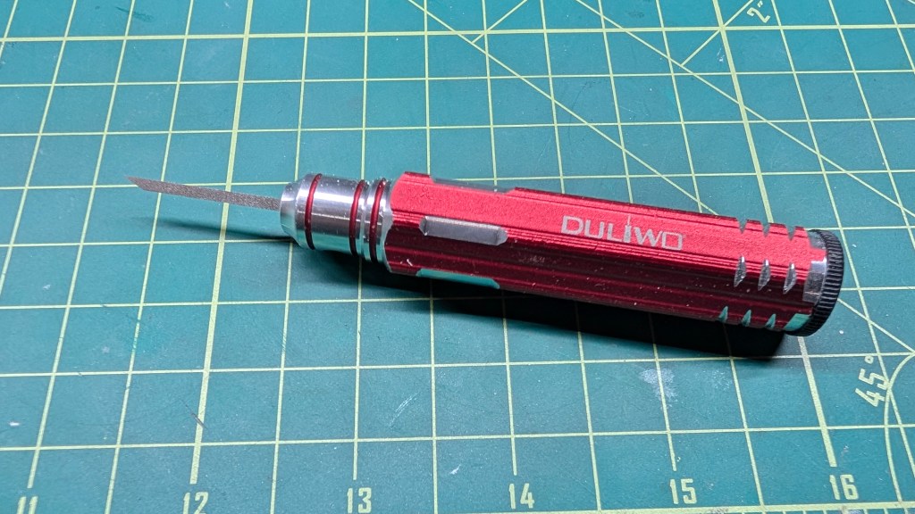 On to spending more money. I got a little red handle with a bunch of cutting tips, and that worked better than the pin vice needle and the Tamiya tool, but any sort of curve was really challenging.