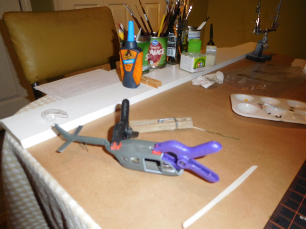 The cockpit/interior was the first subassembly. It had lots of small parts (as expected in a 1/72 scale model), but they fit together quite well. The main body of the helicopter also came together with only a very small amount of putty necessary.