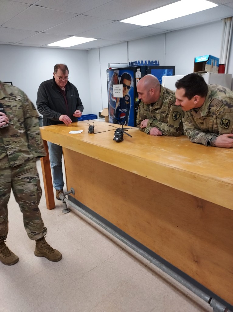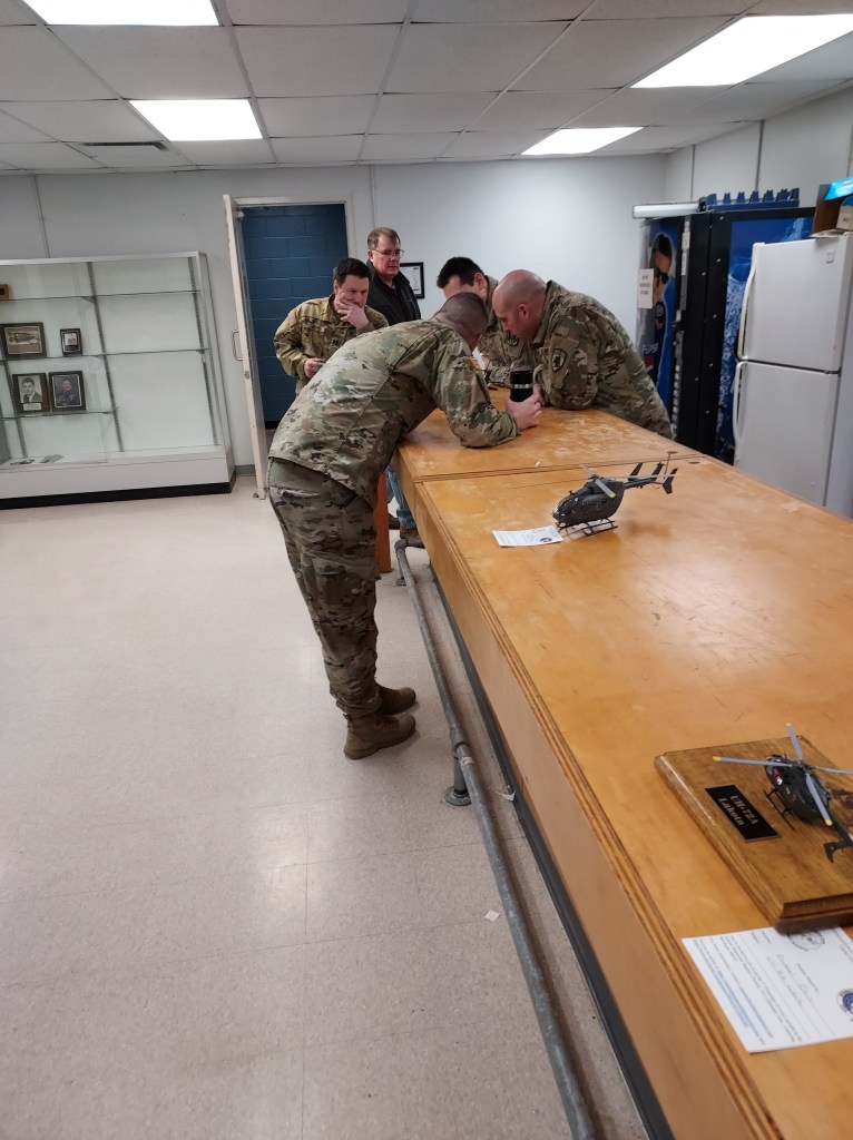 In April, 2025, Dick made contact with then-commander Capt. Stephen Ronan and suggested CAMS create a display for the facility. Capt. Ronan was very interested in the idea and invited Dick to tour. Dick took lots of photos, especially of the unit’s Black Hawk and Lakota helicopters, with the goal of having club members replicate those aircraft in scale.