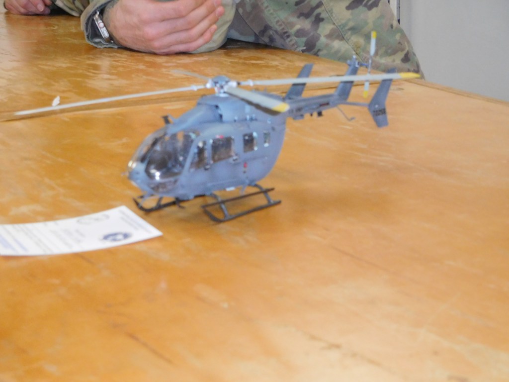 By the time we were done, Capt. Alexander Bur was the commander. We arranged with him to come to the armory and present the models. We brought three Black Hawks and two Lakotas in 1/72nd, 1/48th and 1/32 scales, as well as a Chinook in 1/48th scale.