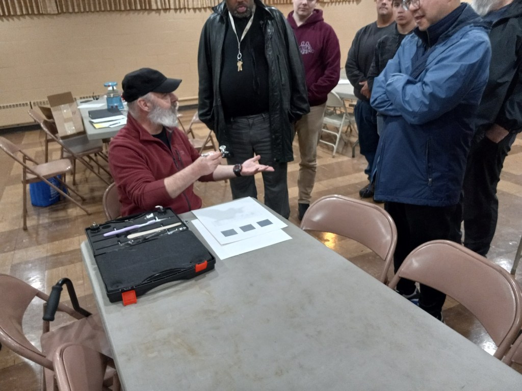 Michael B gave a presentation on how to add texture to a paint job.  He explained that, for a gravity-feed airbrush, pulling the trigger back, releasing, then pressing the air “spits” a fine mist which can add variation in color for things like stone/pavement texture, mud splatters, etc.   Other techniques for any airbrush, not just gravity-feed, is to load a tongue depressor or thumb with paint, then send a blast of air across the top, or simply flicking a toothbrush loaded with paint.