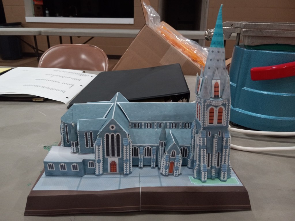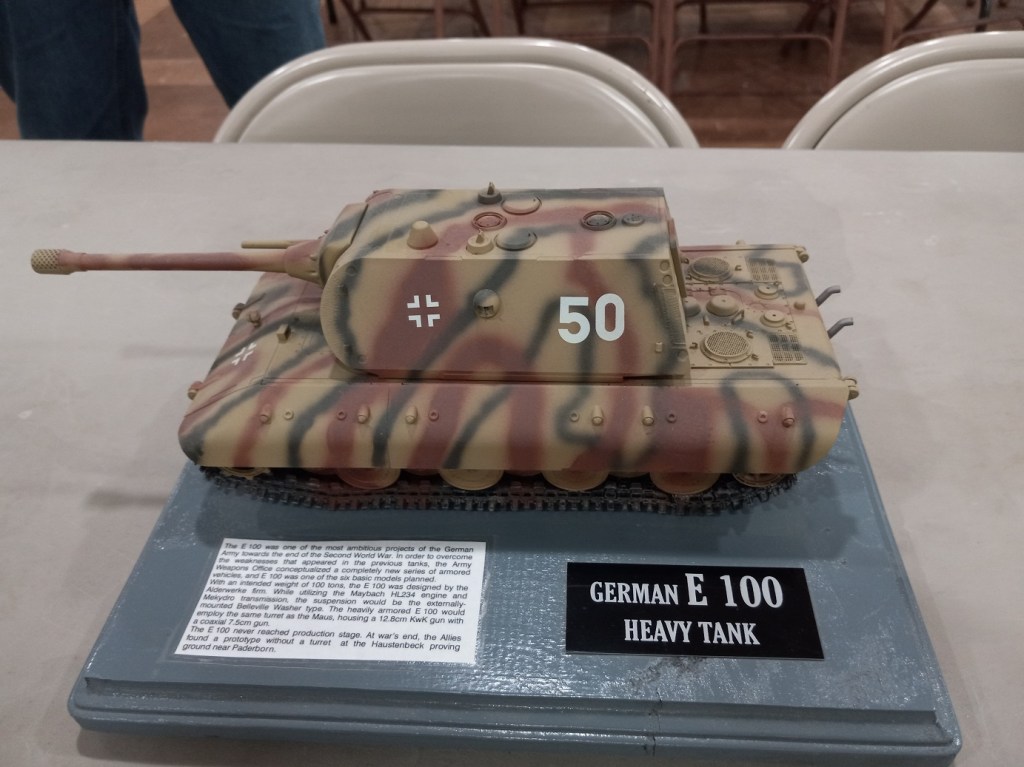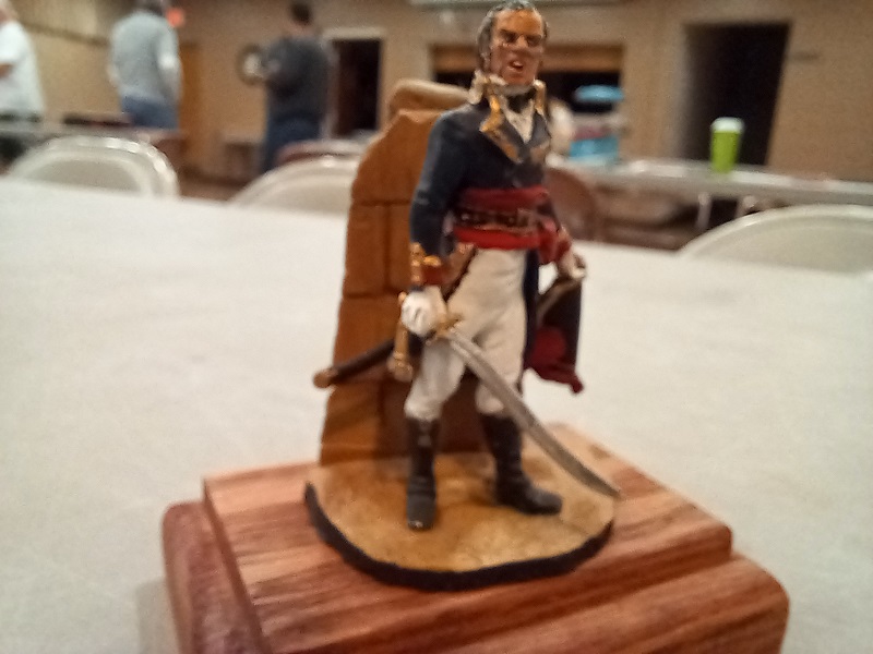 Jason, Vern and young Vern were all working on 3-D printed sci-fi kits.  John W. showed a well-defined Napoleonic infantry officer in Egypt.  Dick had his two ventures into paper modeling.  Steve H. brought his heavy tank with which he was trying “squiggle line” camouflage.