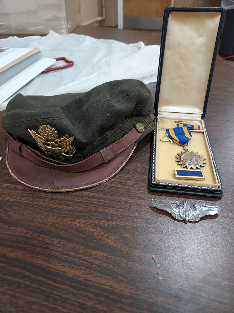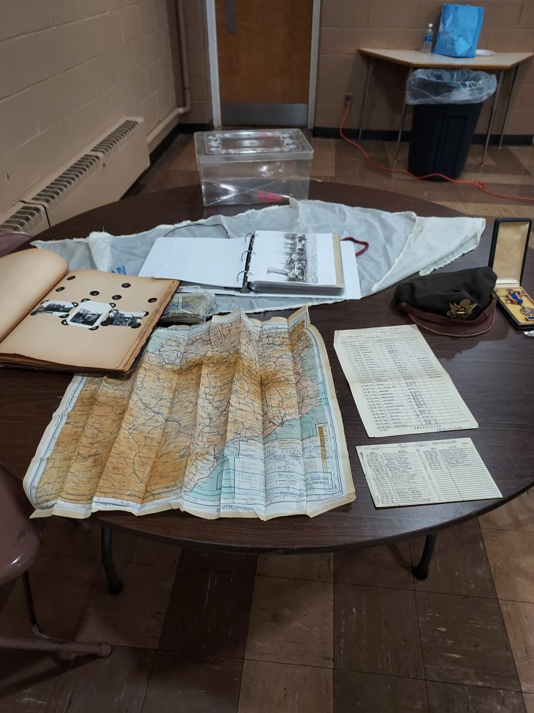 Some of the memorabilia Brad brought representing his father’s time in the Air Force and supplementing his presentation on his “Band of Brothers” tour through Europe.