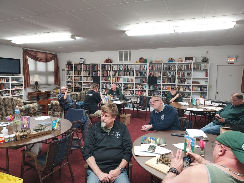 Dick said that next month Brad will give a presentation on how he has constructed the interior of his Tiger I build. In June, Dick encouraged each person to bring a completed project; he will present information on how both ranked judging and open judging are done, then members will have the opportunity to evaluate their project against those standards.